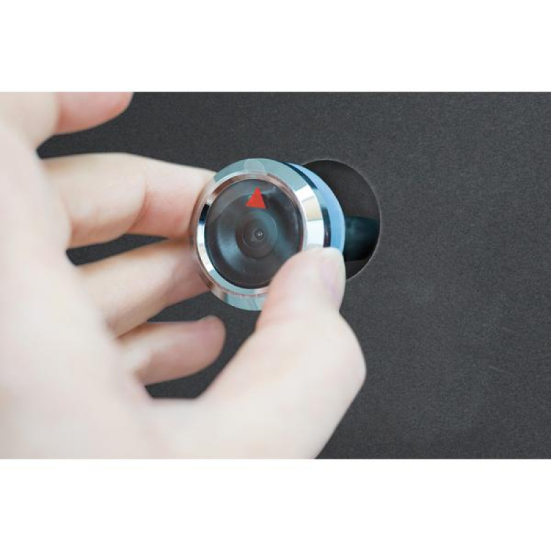 Der digitale Türspion ermöglicht es Ihnen per Knopfdruck zu sehen wer vor der Türe steht, ohne diese zu öffnen. Der Door eGuard DG 8100 verfügt über eine schlichte aber stilvolle Formgebung. Der 3,2-Zoll Bildschirm liefert ein klares und scharfes Bild, auch bei schlechten Lichtverhältnissen. Betrieben wird der digitale Türspion mit 2 AAA-Batterien. Die Reaktion des Bildschirms ist mit etwa 1 Sekunde schnell und zuverlässig.