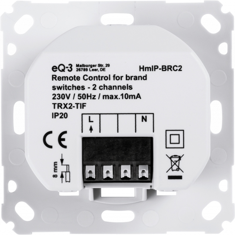 - Der netzbetriebene 2-Kanal-Funk-Wandtaster ermöglicht das Schalten von angelernten Homematic IP Aktoren und Schaltsteckdosen sowie das Auslösen des Ecobetriebs oder des Panik-Lichts.